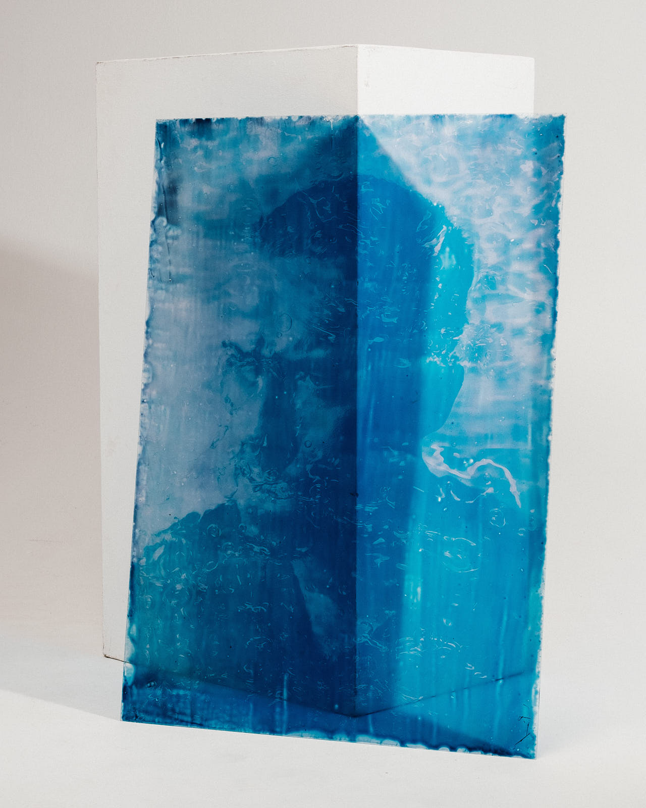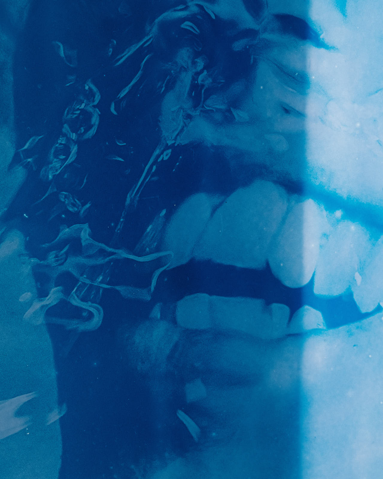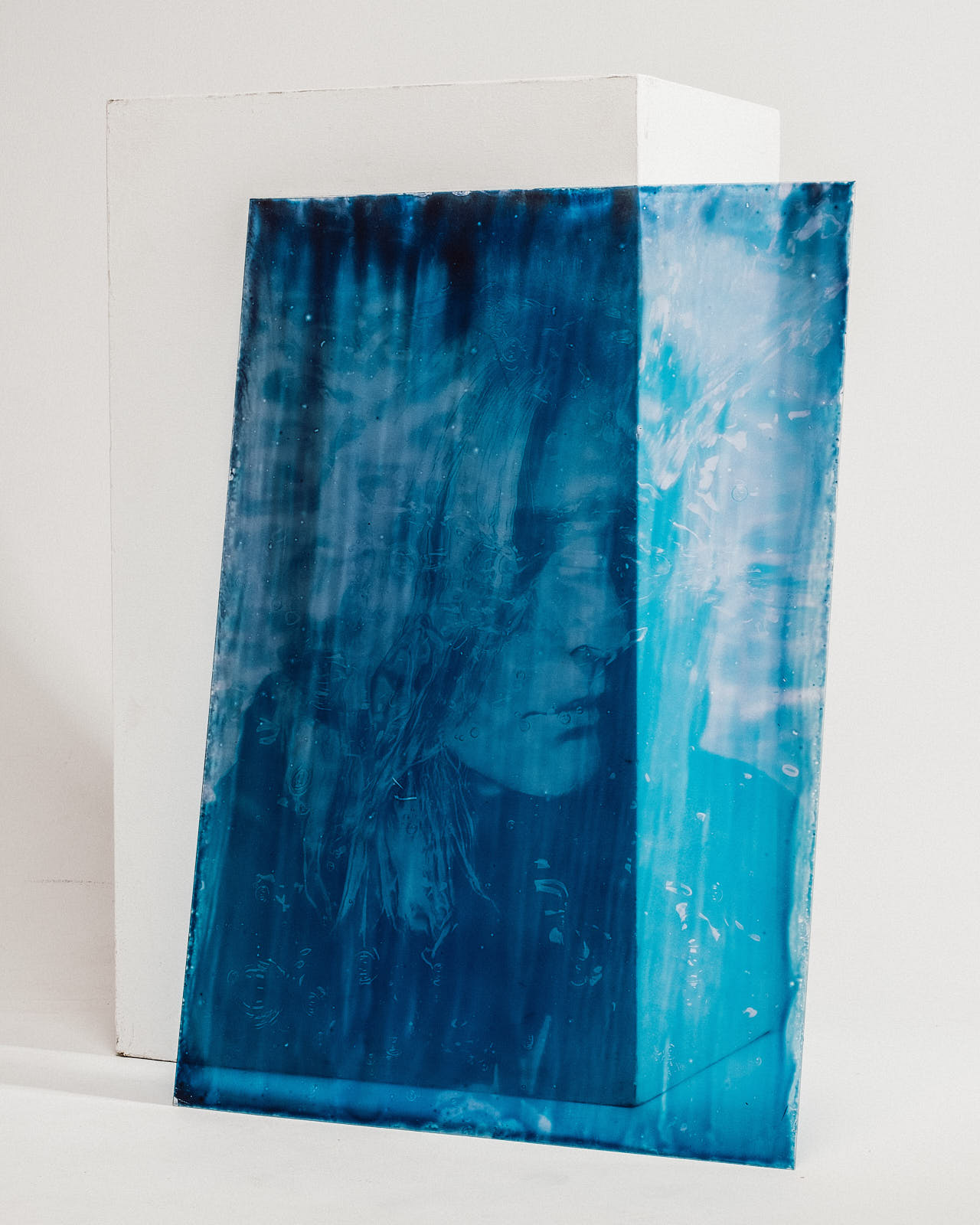 dilution examines the relationship between visibility and concealment. using cyanotype, the work questions photography’s claim to represent reality. transparent, freely suspended portraits reveal which aspects of a person appear, fade, or dissolve within the image. - cyanotypes on plexiglass