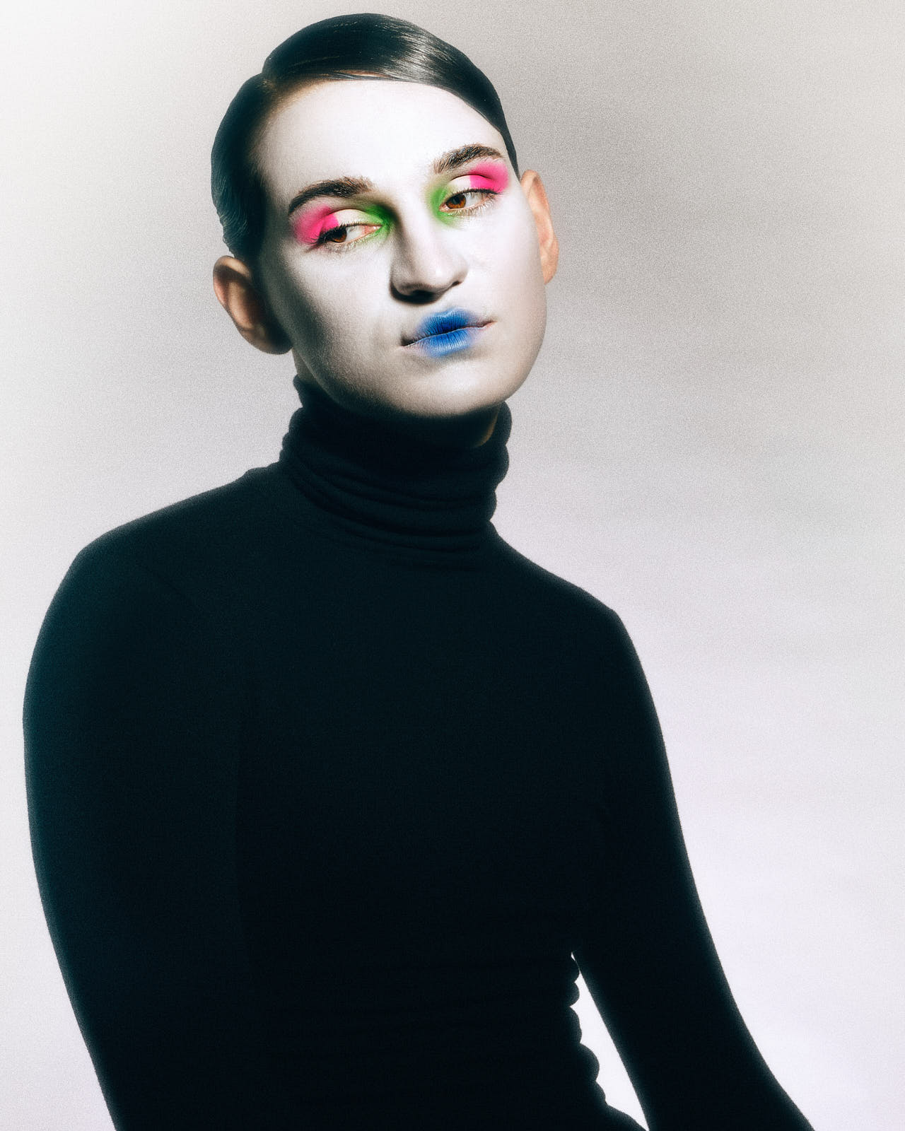 Modern Pierrot — exploring colors and contrasts with sharp lines framing soft gradients.
